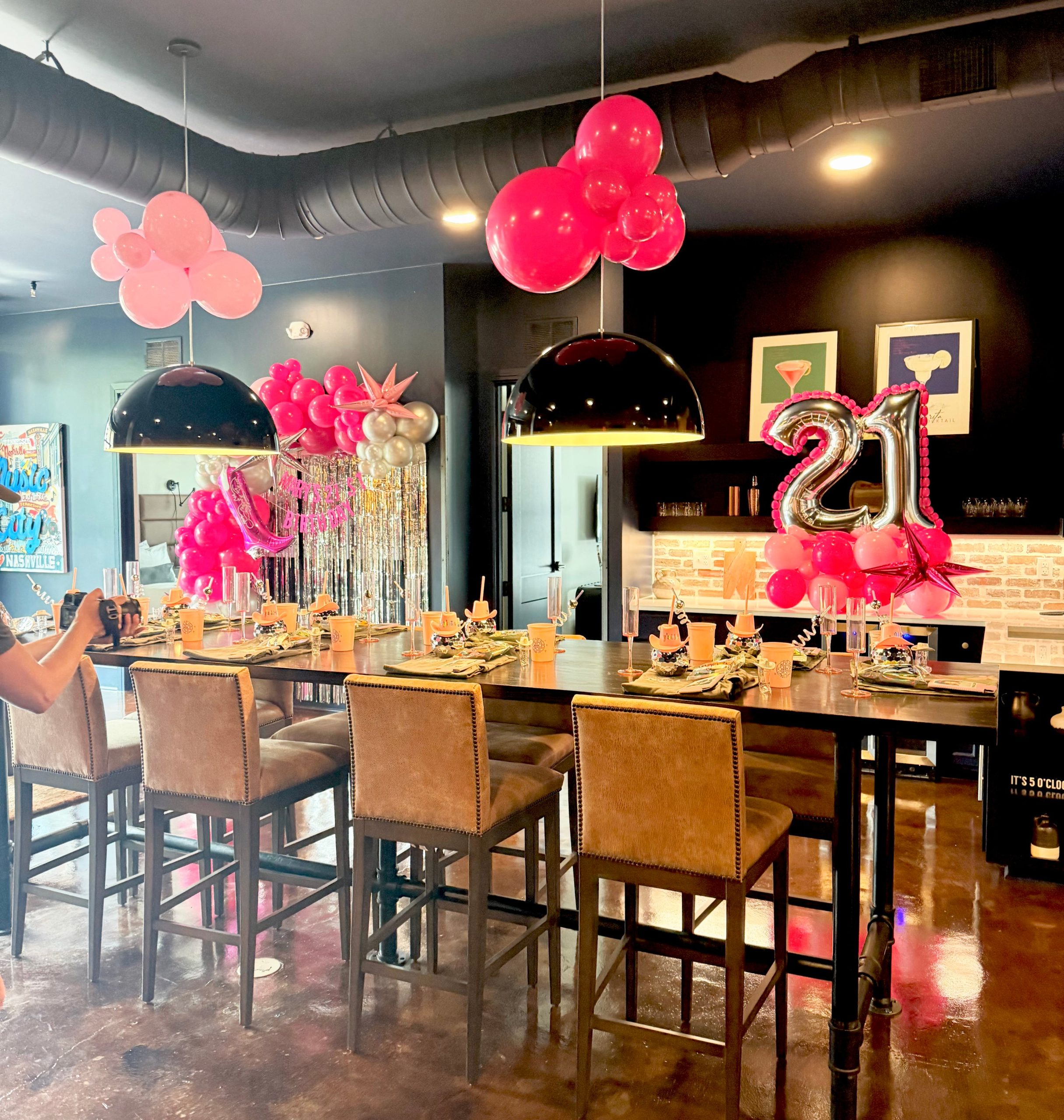 From dreamy bachelorette setups to bold balloon installs and chic corporate events, we’ve styled celebrations all across Nashville and beyond. Explore our gallery to see how we bring color, creativity, and a little sparkle to every occasion.
