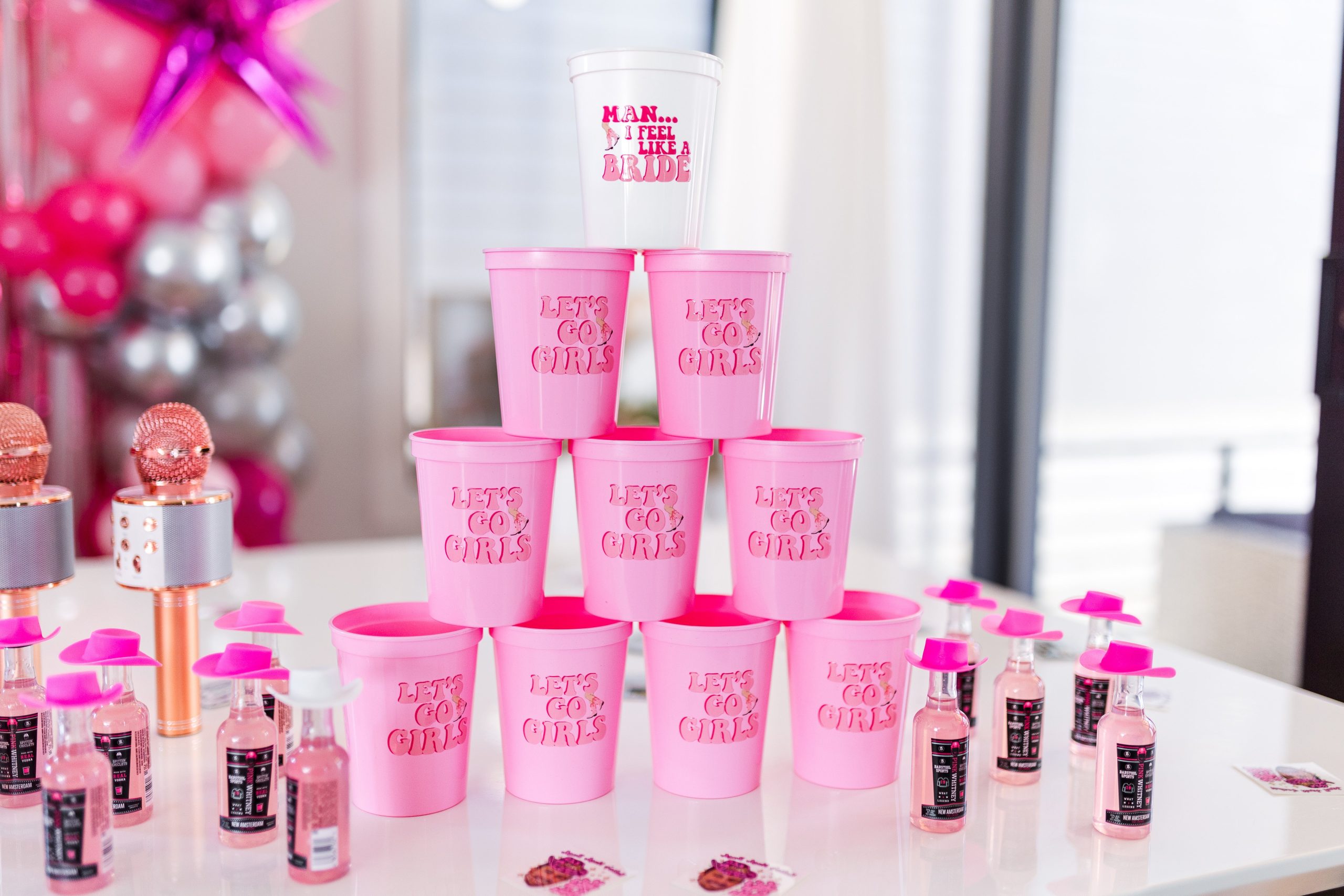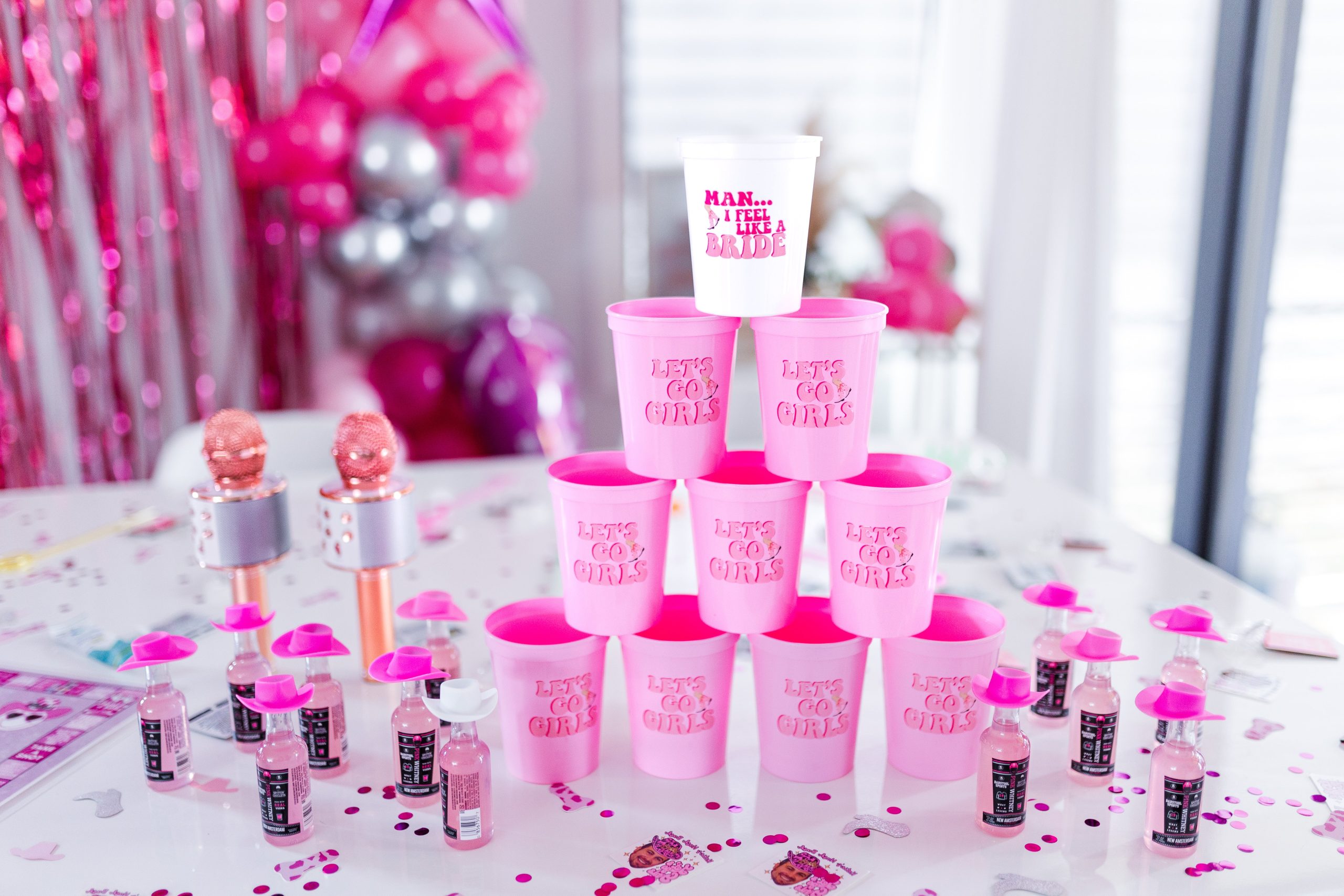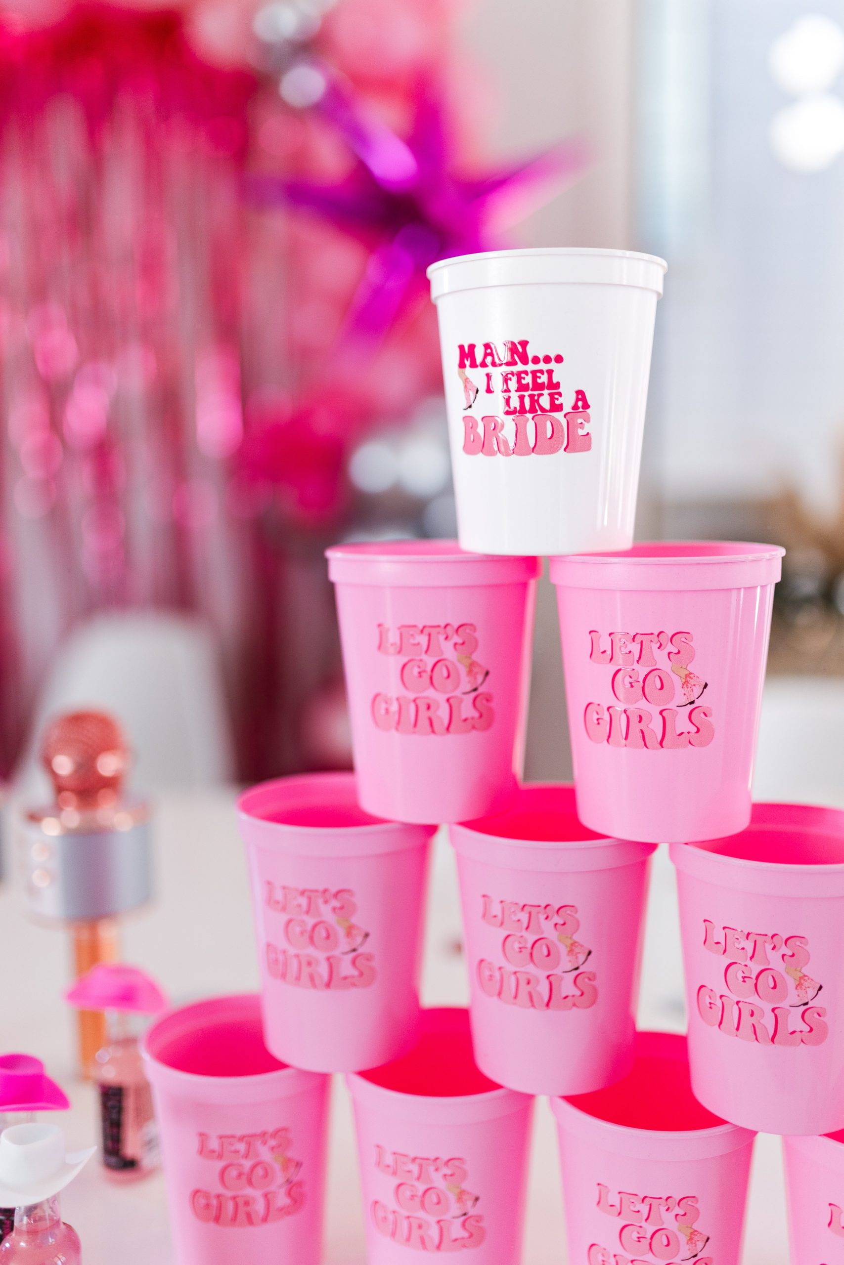 The perfect match for your enchanting celebration! These custom cups are designed to harmonize with your theme, featuring a delicate blend of soft pink and pure white. Crafted with durable plastic, they're ready to hold all your favorite beverages as you toast, dance, and make unforgettable memories. Cheers to a night of laughter, friendship, and the bride's journey ahead!