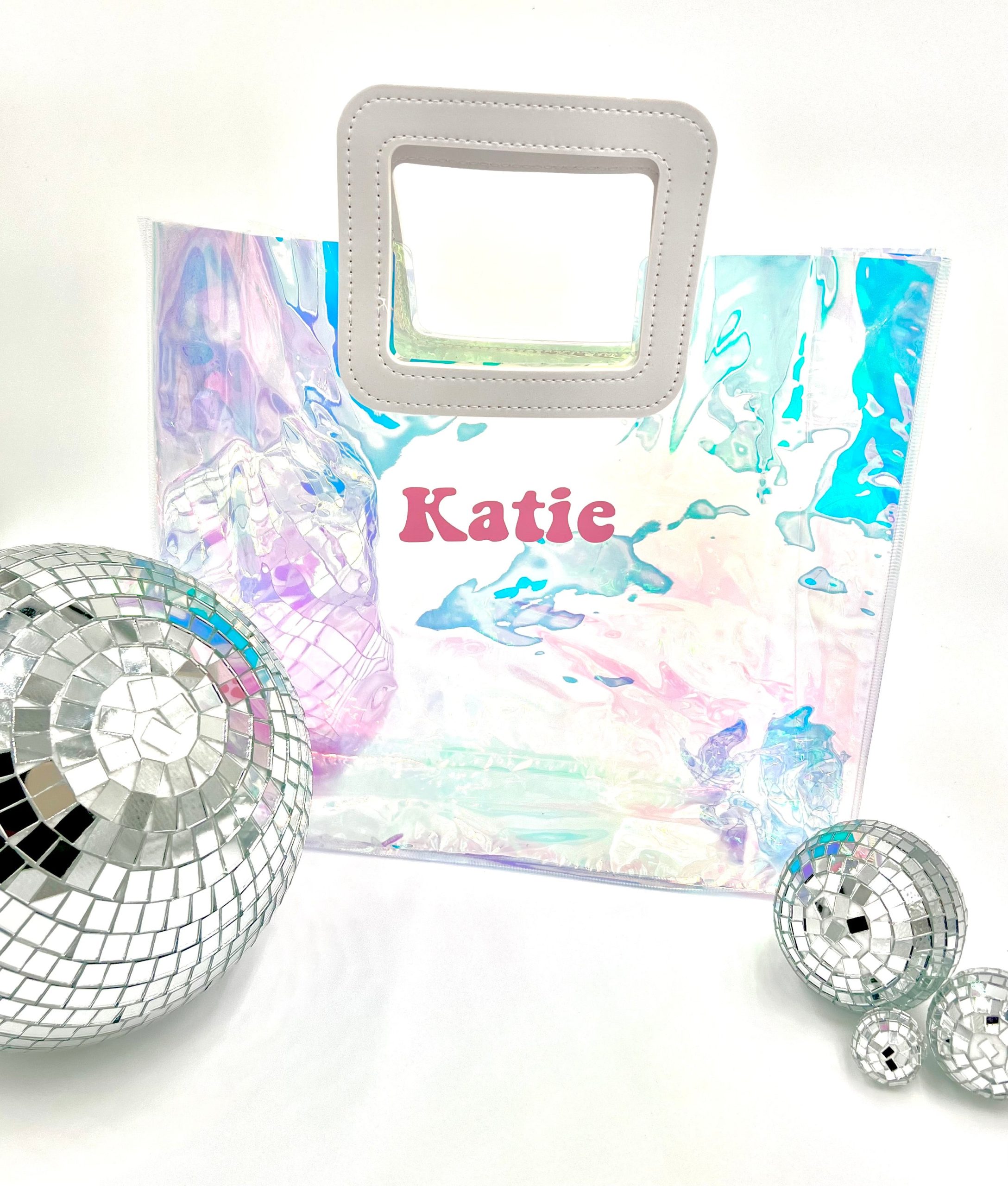 The 90s are back baby! Throw your sunnies, towel and favorite book into this custom tote and head to the beach. Don't let the size fool you, this versatile bag is also a great favor bag to show-off all your swag for a girls trip or bachelorette or gifting your flower girl! Plus, everyone will love the personalized touch.