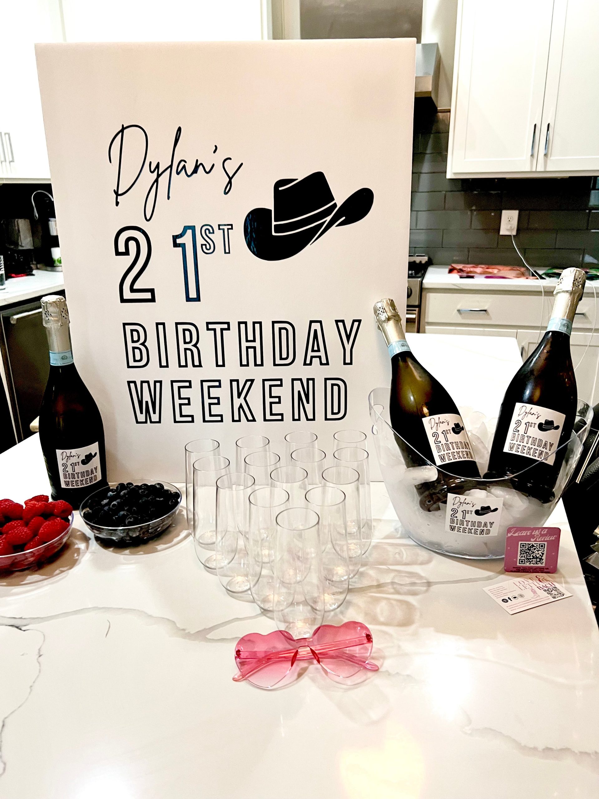 Get ready to pop the bubbly and celebrate in style with our fabulous Small Mimosa Bar! We've got you covered with three champagne bottles, each dressed up in custom labels that are custom to your weekend theme! Choose from two juice options that will make your mimosas extra special and sip on your drink while enjoying the juicy sweetness of two delicious fruits. Our Mimosa sign sets the mood, creating the perfect backdrop for unforgettable bachelorette memories. Raise your glasses high in chic champagne flutes and keep the party going with an ice bucket filled to the brim. Get ready for a sparkling celebration as you toast to the bride's journey ahead! Cheers, laughter, and mimosas await with our oh-so-fun Small Mimosa Bar!